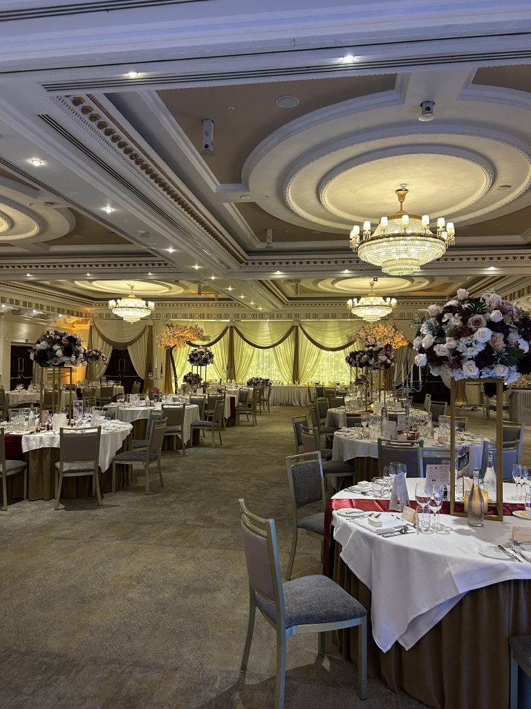 On Saturday, September 27th, 2025, we had the pleasure of styling the wedding of Cliodhna & Wiktor in the breathtaking surroundings of Powerscourt Hotel. Their chosen theme was a rich and romantic blend of burgundy, creams, and subtle touches of white and green, which created an elegant atmosphere for both their civil ceremony and reception celebrations.