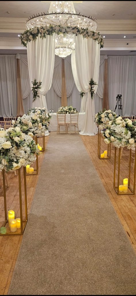 At Wow Weddings, we offer full civil ceremony décor packages, including room draping, aisle décor, floral canopies, personalised signage, and custom layouts. Every ceremony is designed to suit the couple’s style and the venue layout.